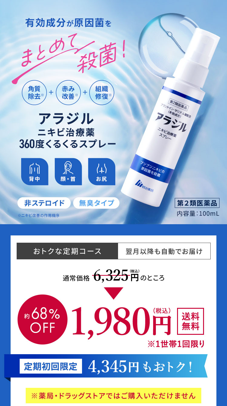 - アラジル ニキビ治療薬 スプレー(外皮用薬)【第2類医薬品】