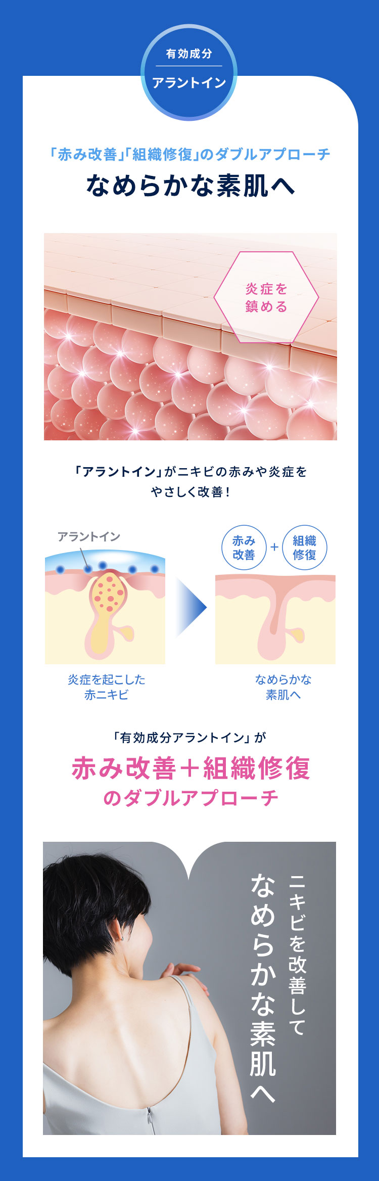 - アラントイン…ニキビを赤みを改善、組織を修復