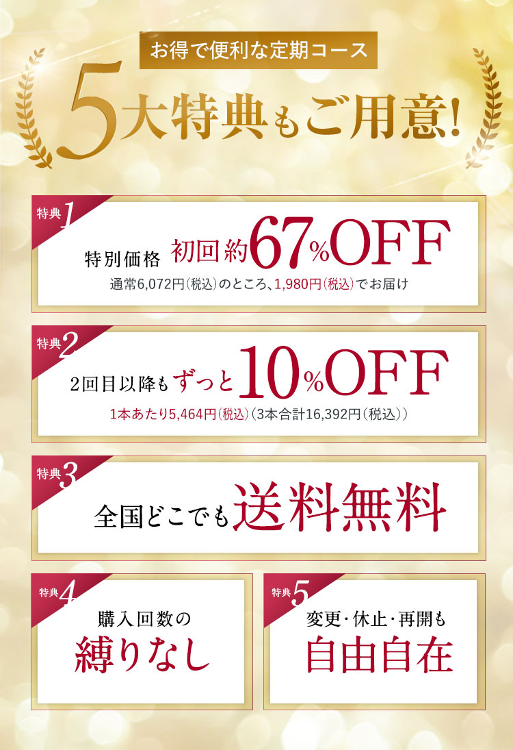 - 2回目以降は10%OFFの3本16,392円(税込)になります。