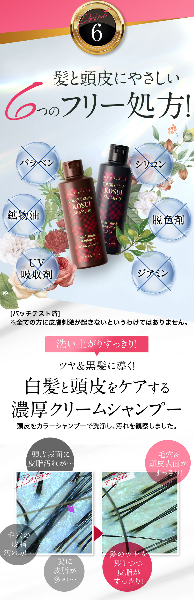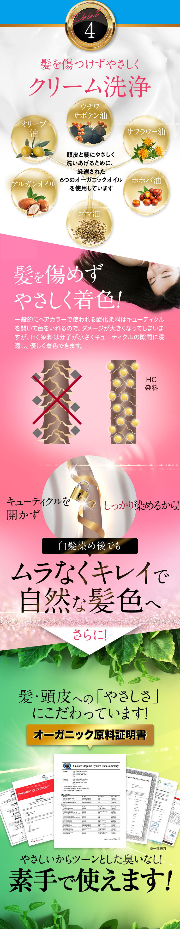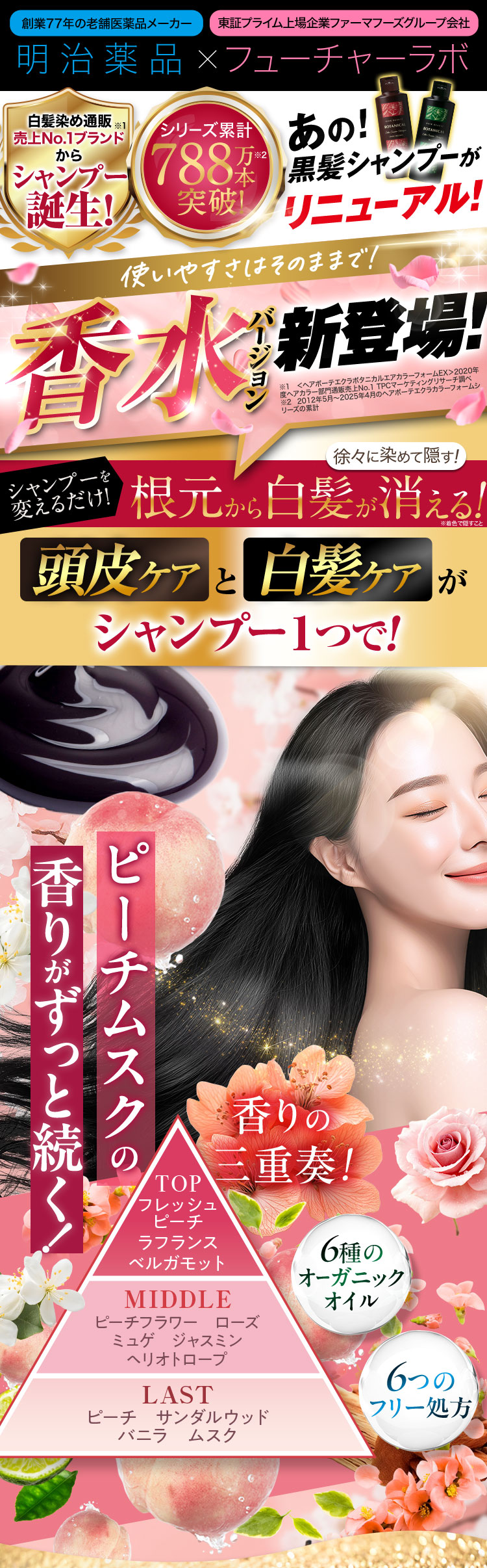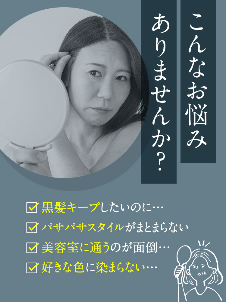 - 水、BG、グリセリン、ソルビトール、尿素、水添ナタネ油アルコール、PPG-1/PEG-1ステアラミン、エチルヘキサン酸セチル、グリシン、リゾレシチン、ミツイシコンブエキス、環状リゾホスファチジン酸Na、加水分解卵黄、 アセチルヘキサペプチド-1、ラリックスエウロパエア木エキス、アセチルチロシン、チャ葉エキス、フィトスフィンゴシン、ザイモモナス培養エキス、ハチミツエキス、卵殻、炭、グリチルリチン酸2K、卵殻膜、アセチルヒアルロン酸Na、 加水分解ヒアルロン酸、ヒアルロン酸ヒドロキシプロピルトリモニウム、加水分解コラーゲン、水溶性コラーゲン、サクシノイルアテロコラーゲン、加水分解シルク、ハチミツ、加水分解コンキオリンタンパク、セイヨウヤブイチゴ葉エキス、 ココイル加水分解コラーゲンK、(加水分解シルク/PGプロピルメチルシランジオール)クロスポリマー、ポリクオタニウム-61、ポリクオタニウム-47、センブリエキス、ビワ葉エキス、オウゴン根エキス、ノイバラ果実エキス、 シャクヤク根エキス、マグワ根皮エキス、トウキ根エキス、クララ根エキス、アカヤジオウ根エキス、オタネニンジン根エキス、オプンチアフィクスインジカ種子油、ハイブリッドサフラワー油、ホホバ種子油、オリーブ果実油、ゴマ油、 アルガニアスピノサ核油、ココイルグルタミン酸TEA、ラウロイルアスパラギン酸Na、ココイルアラニンTEA、イソステアロイル加水分解コラーゲンAMPD、γ−ドコサラクトン、(アクリル酸ブチル/イソプロピルアクリルアミド/ジメタクリル酸PEG-18)クロスポリマー、 加水分解ウールキューティクルタンパク、ココイルアルギニンエチルPCA、マルトデキストリン、デキストラン、トレハロース、スクワラン、セバシン酸ジエチル、イソステアリルアルコール、ミリスチルアルコール、ステアリン酸グリセリル、 ベヘニルアルコール、ラウリン酸ポリグリセリル-10、オレス-20、ベヘントリモニウムメトサルフェート、ポリクオタニウム-10、ステアラミドプロピルジメチルアミン、イソプロパノール、エチルヘキシルグリセリン、ペンチレングリコール、 塩化亜鉛、乳酸、炭酸水素アンモニウム、塩化Na、エタノール、香料、[+/−]塩基性青99、HC青2、塩基性赤76、塩基性茶16、HC黄4、HC黄2、4-ヒドロキシプロピルアミノ-3-ニトロフェノール